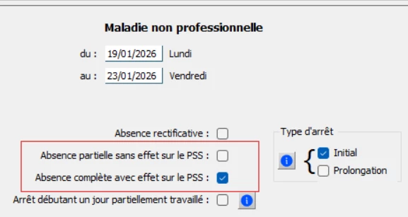 Dans quelle situation activer “absence complète avec effet sur le PSS” dans le cadre d’arrêt MNP ou AT ?