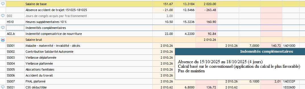 J’ai un salarié absent du 15/10 au 18/10 (du mercredi au samedi) pour un accident de trajet.