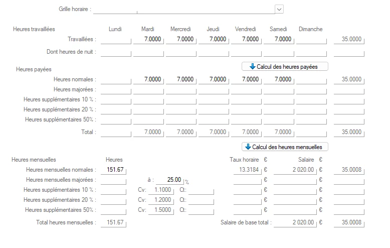L’employé travaille du mercredi au samedi à raison de 7 heures par jour renseigné dans le planning de la fiche salarié.