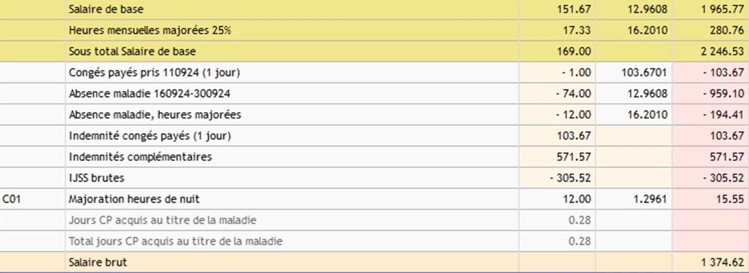 Ce salarié a été en arrêt maladie (non professionnelle) au mois de septembre 2024, du 16 au 30 septembre. Toutefois, Silae lui à calculé 0,28j de CP acquis au titre de la maladie.