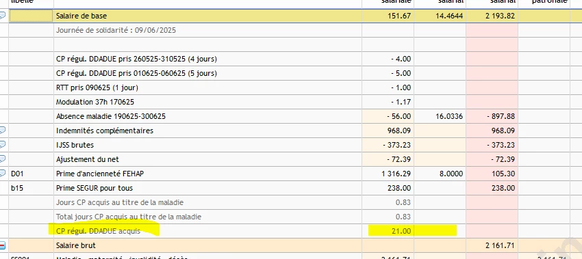 voici le cas ou j’ai mis les CP en plus suite aussi à une longue maladie antérieure à 04/2024. et ensuite on utilise le profil pour la pose des CP dans le cas de la DDADUE. merci l’europe!