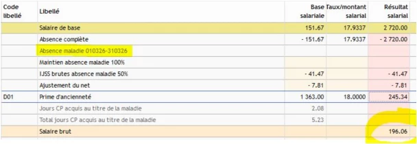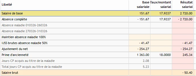 J'ai un soucis sur un bulletin de salaire, j’ai un brut négatif sachant qu'il reste 1 journée avec un maintien de salaire à 100% + la prime d'ancienneté en totalité.