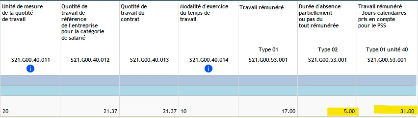 En DSN, voici les informations du bloc 53 :