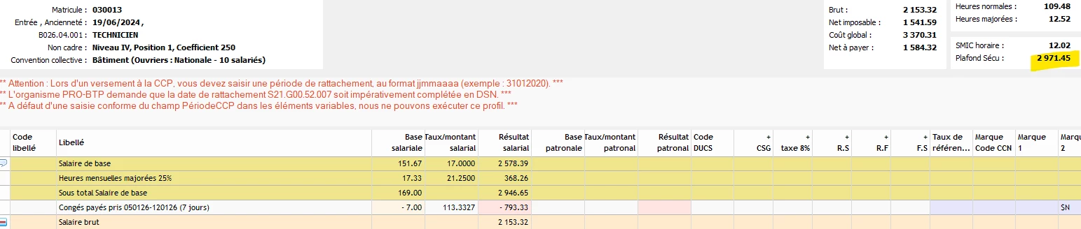Exemple sur un dossier bâtiment avec caisse des CP, lors de la pose des CP :