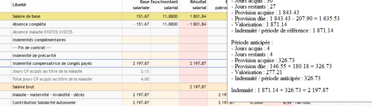 Je ne comprend pas comment le logiciel calcule la provision pour les congés payés.