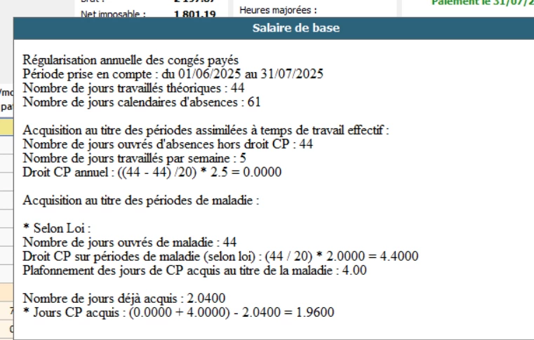 Car même en prenant en compte le principe d’équivalence, comme il n’a pas du tout travaillé sur cette période, le salaire devrait être pris en compte à 80%. Surtout qu’il le fait bien pour le nombre de congés. Il compte bien 4 jours de congés pour juin et juillet.