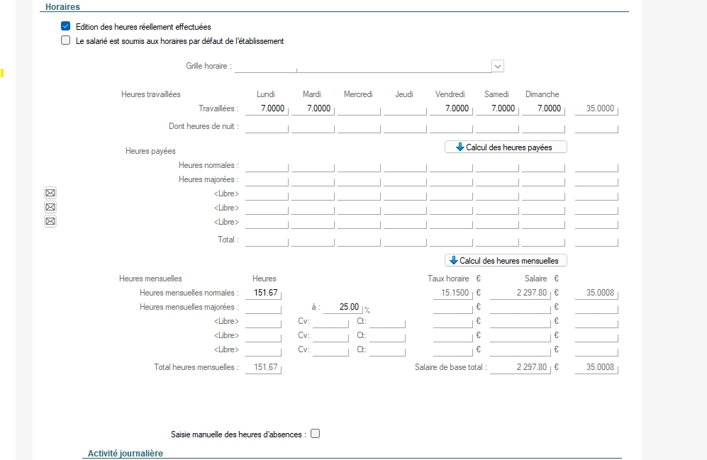 J’ai saisi la grille horaire de chacun (voir ci dessous), pour autant le logiciel continue à calculer les prises de CP comme si mes salariés travaillaient du lundi au vendredi.