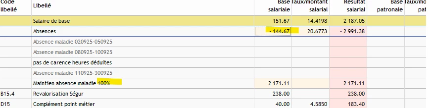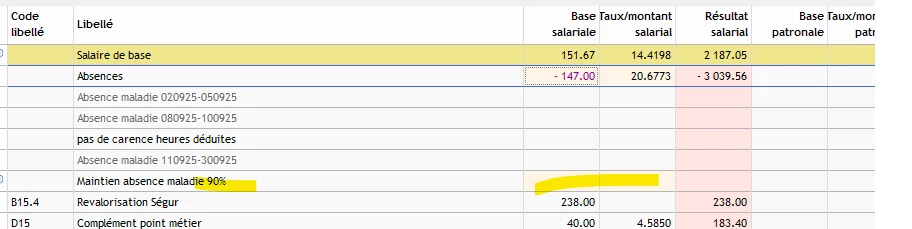 Bonjour à tous et bonjour @Philippe PLANCQ Avez-vous eu le cas d’une absence maladie forcée (nombre d’heures) avec un libellé de maintien qui ressort “erroné” avec la notion de maintien légal (90%) au lieu du conventionnel (100%) ?