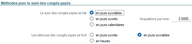 Dans la fiche société, la déduction des congés est pourtant bien paramétrée en jours ouvrables.