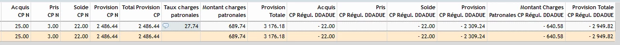 En effet, en utilisant le profil et en mettant -22 jours au 31/05/2025, le compteur CP et la provision ne bouge pas.