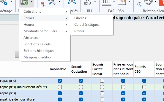 Dans Référentiel / Primes / Caractéristiques vous pouvez voir le détail de chaque prime.