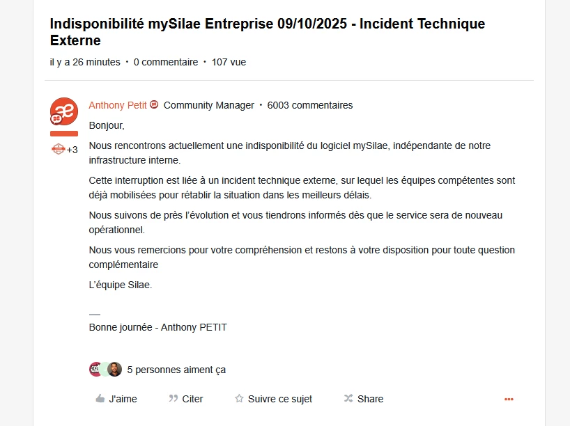 Bonjour, un client m’indique qu’il ne reçoit plus les notifications de demandes de congés de ses collaborateurs sur l’application My Silae. Pourtant il reçoit bien les mails.