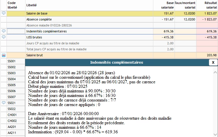 Ma demande concerne une salariée qui est en arrêt maladie depuis le mois de décembre 2025 et a épuisé l’intégralité de ses droits au mois de février 2026 (soit 60 jours de maintien).