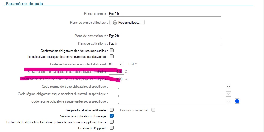 J’ai regardé dans la fiche salarié mais je n’ai pas trouvé d’endroit pour indiquer qu’elle avait deux emplois (sauf dans les proratas de plafond que je ne voulais pas toucher car le plafond est déjà proratisé par rapport à l'horaire mensuel qui est de 91 heures dans chacune des structures