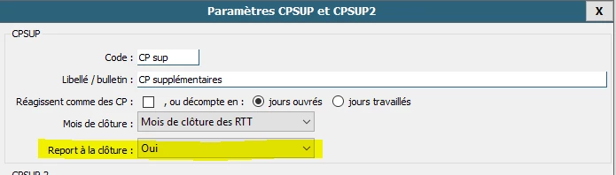 Bonjour, si vous passez par le paramétrage CP SUP il est possible de faire le report en cliquant sur oui :