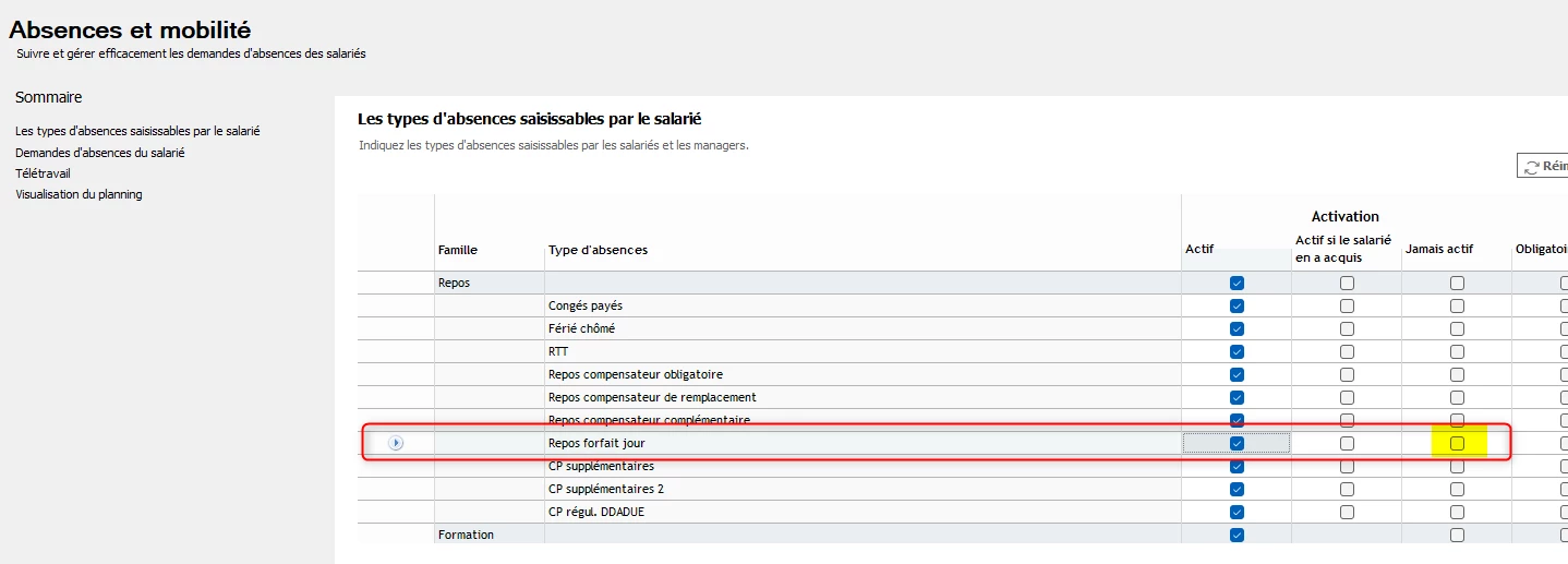 Vous avez tout à fait raison : concernant le forfait jours, il s'agit bien de jours de repos et non de RTT. Cependant, Silae ne disposant pas d’un compteur spécifique pour les jours de repos liés au forfait jours, le compteur RTT est utilisé temporairement en attendant une solution plus adaptée.