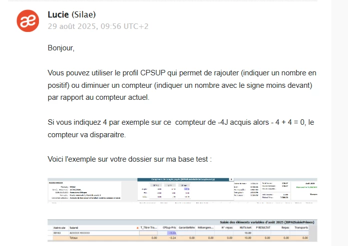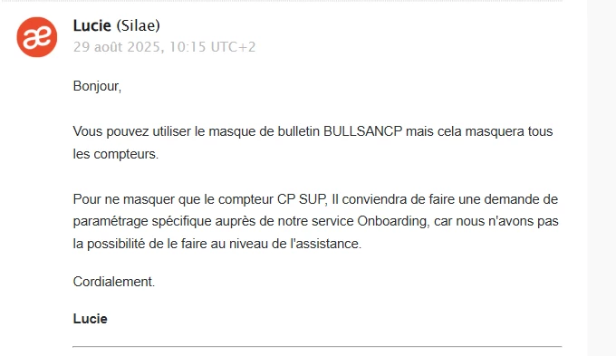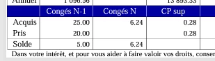 Nous avons donc mis ses journées en “congé supp apprenti”, ce qui déclenche un compteur supplémentaire dans le bulletin.