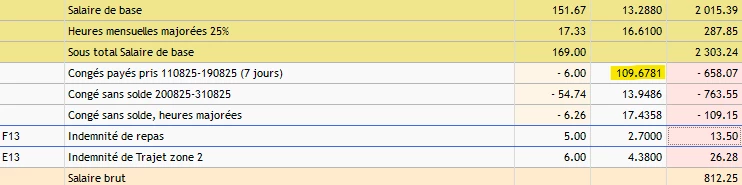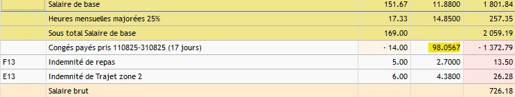 Pourriez-vous m’indiquer la formule correcte à utiliser afin de retrouver le bon taux horaire pour les congés, s’il vous plaît ?