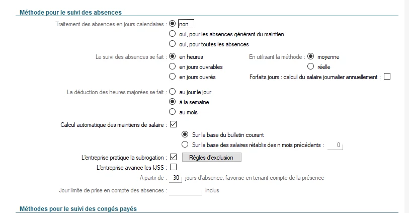Le suivi des congés payés se fait en jours ouvrables. Les retenues se font en jours ouvrés.