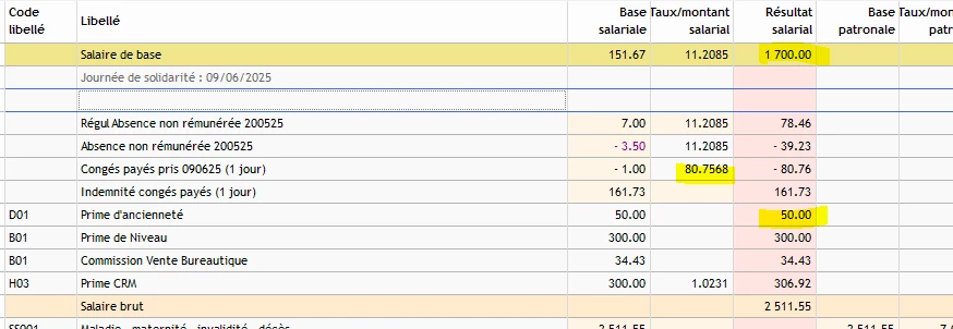 En juillet, j’ai des CP également mais silae en valeur journalière prend (SMC (1875) + la prime d’ancienneté/21.67).