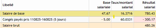 Il n’y a eu aucunes primes ou autres variables qui pourraient avoir un impact sur le montant.