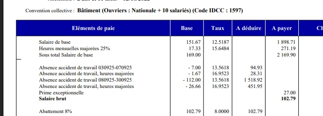 Le salarié est rémunéré 12.5187 de l’heure Silaé retire 13.5618