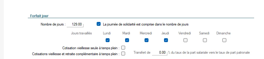Ce salarié est un forfait jour réduit nous avons donc renseigné les jours travaillés d’une des deux semaines (ici, en l’occurrence, la semaine impaire) :