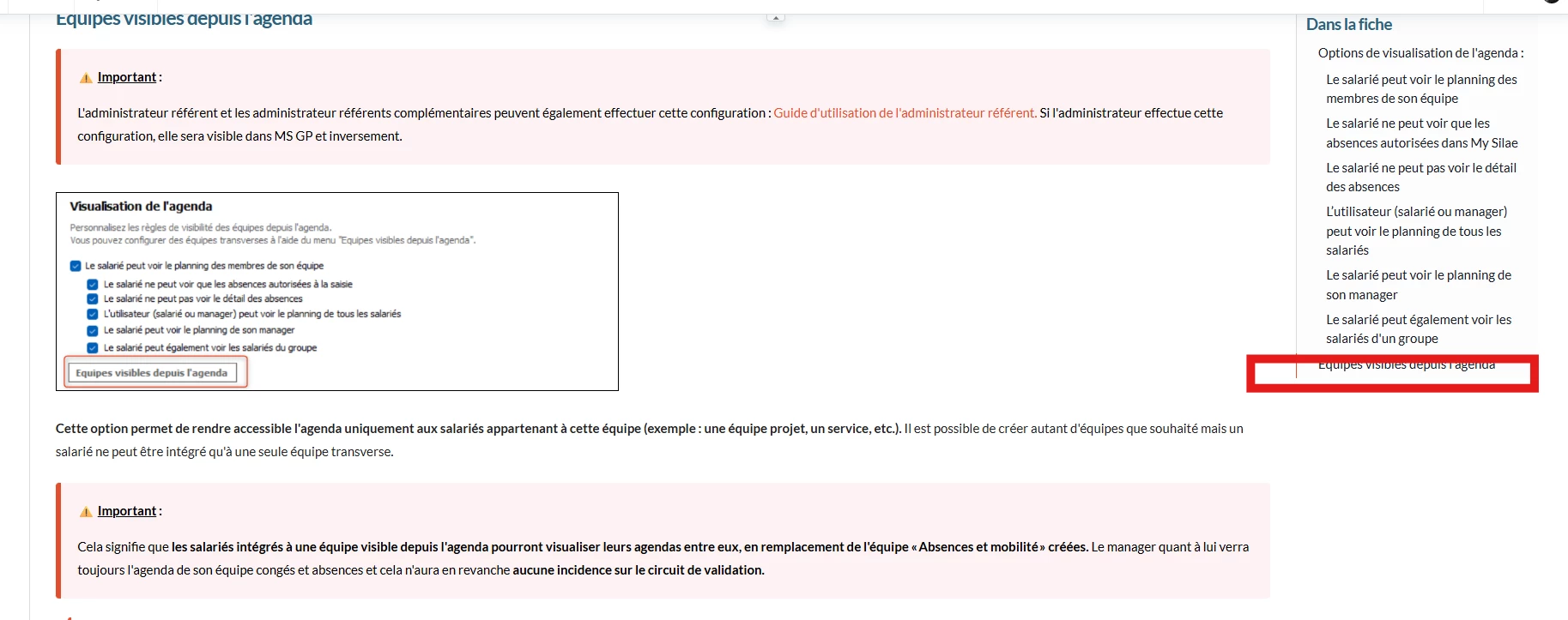 Je n’arrive pas à parametrer l’agenda pour que les chefs d’équipe puissent consulter l’agenda du groupe défini sans pouvoir inscrire d’absences.
