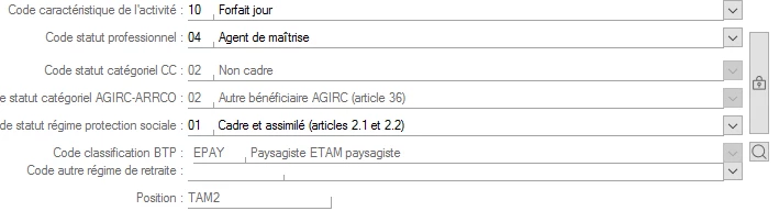 La fiche salariée est renseignée ainsi :