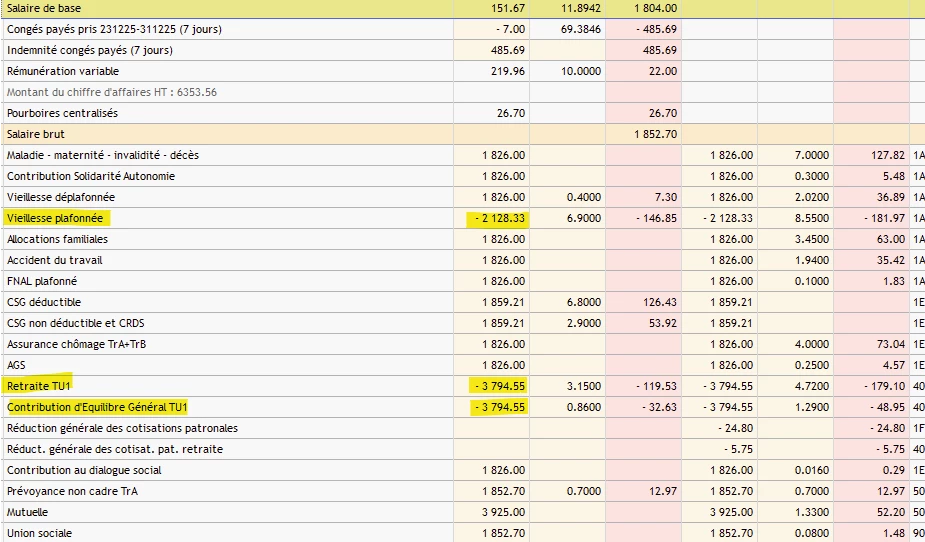 Lorsque je saisie les pourboires de la salariée, des régularisations de cotisations apparaissent pour la vieillesse plafonnée et la retraite T1. Je ne comprends pas pourquoi.