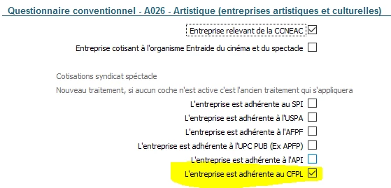 Bonjour, sur un dossier CCN Artistique, je souhaiterai déclencher la cotisation syndical CFPL à 0.50%