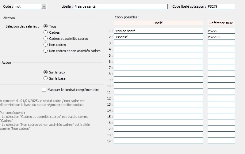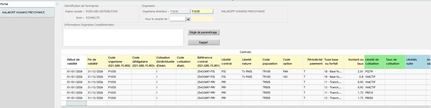 J’ai crée une cotisation PS279 rattachée à la convention + un contrat complémentaire et coché dans la fiche salarié l’adhésion mais rien n’y fait, Est ce que quelqu’un a déjà eu ce problème?
