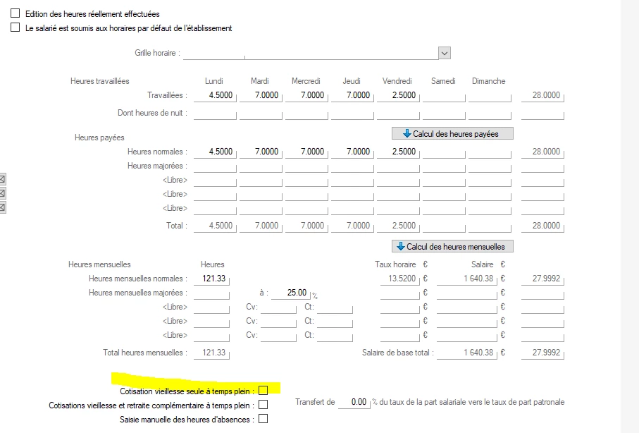 Bonjour, je souhaite mettre en place pour un salarié à temps partiel la fonction de calcul des cotisations retraite sur un temps complet.