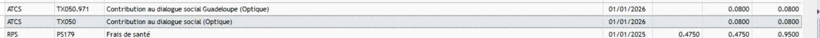 Silae a modifié le taux conventionnel en le renseignant à 0 avec une date d’effet au 01/01/2026