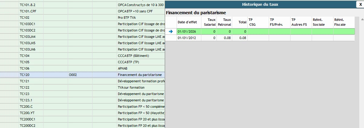 Depuis la dernière mise à jour, la cotisation TC120 financement du paritarisme ne se déclenche plus pour les bulletins établis en 2026.