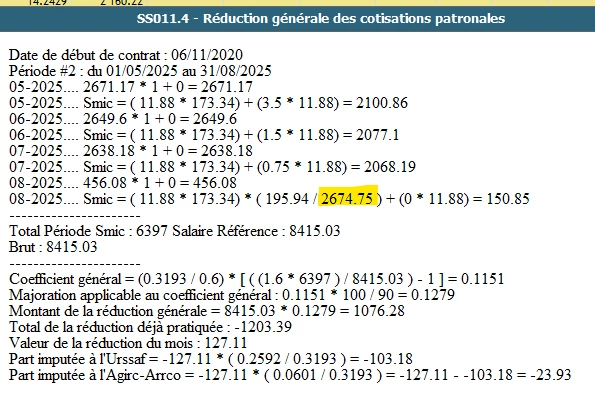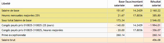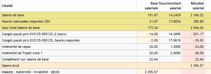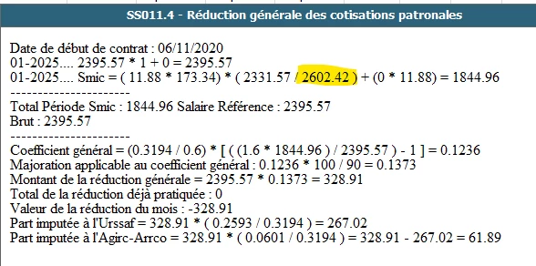 Sur la capture écran ci-dessous : le montant en jaune (brut normalement perçu) n’est pas celui que nous calculons car le salarié a un brut de 2546,02€ pour 173 h 34 (voir 2ᵉ capture).