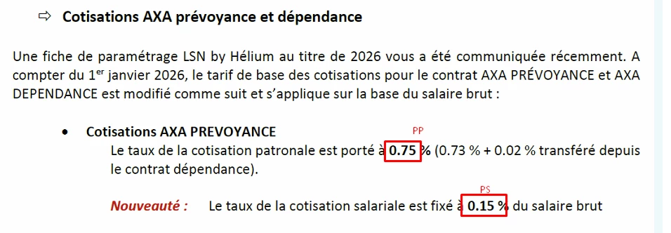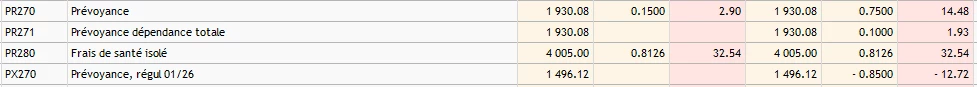 Les taux de cotisation LSN (prévoyance) ont changé au 01/01/2026 et ne sont pas à jour dans les bases SILAE. J’ai directement modifié les taux PR270 et PR271 mais cela n’a aucune incidence sur ma paye (non pris en compte). D’autre part, nous n’avons pas la main sur le taux PX270. Les nouveaux taux sont 0.90% pour le PR270 et 0.1% pour le PR271.