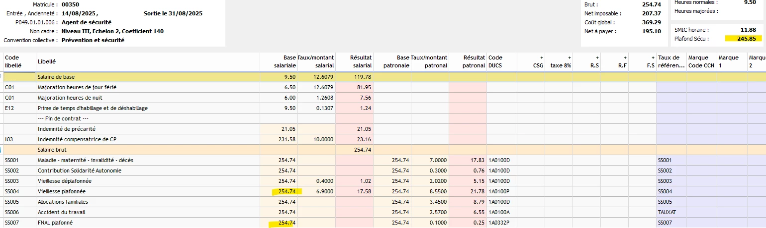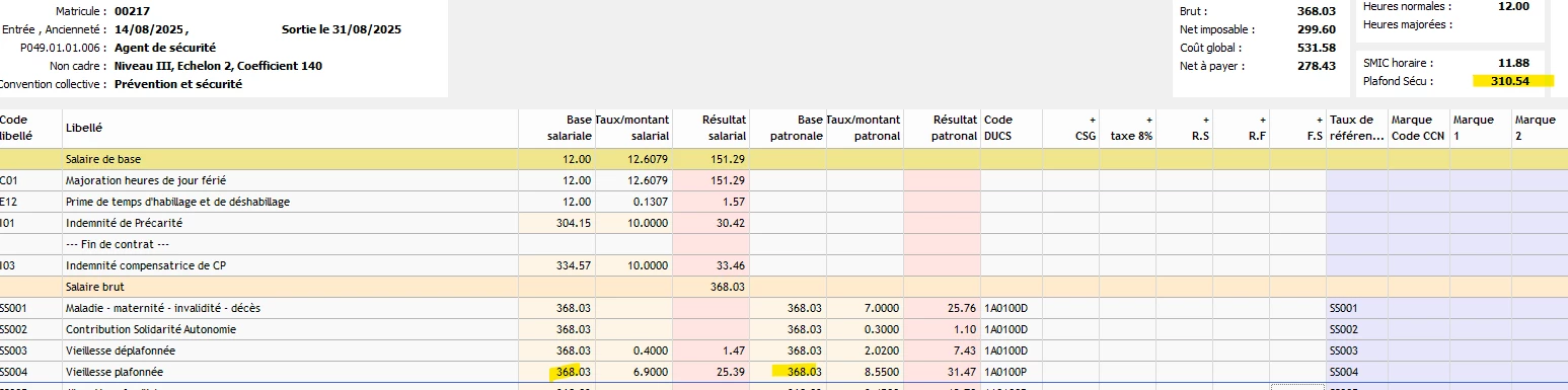 Sur un dossier client, 3 bulletins de salariés qui entrent et sortent au cours du mois sont erronés avec base plafonnée qui ne se met pas bien.