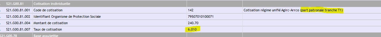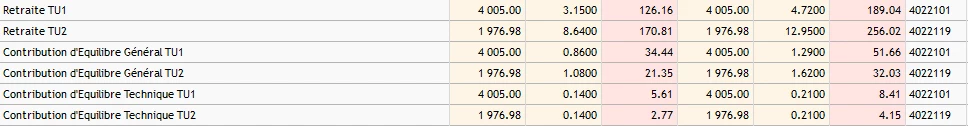 Pour les taux de retraite qui doivent être de 6.22% et 14.78% T1 et T2.