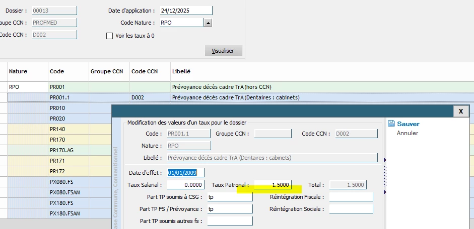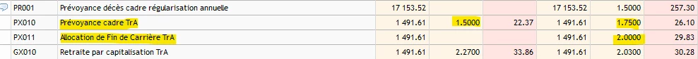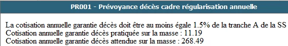 Sur l’un de mes bulletins, il apparaît une ligne automatique “Prévoyance décès cadre régularisation annuelle”. J’ai vérifié mes fiche de paramétrage, et le taux que nous appliquons au niveau de la prévoyance est bien de 5.25%.