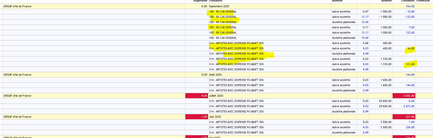 J’ai des lignes “Artistes avec dispense PO abattement 30%”
