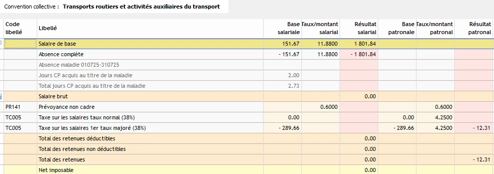 J’ai un salarié qui est en maladie pour tout le mois de juillet et pour lequel je n’ai pas de maintien de salaire, qui a un bulletin à 0. Cependant j’ai tout de même une taxe sur les salaires négative côté employeur. Je n’ai jamais eu le cas.