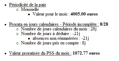 Ces 8 journées sont comptabilisées intégralement pour la proratisation du PMSS, contrairement aux recommandations du BOSS, et sans que la coche “Absence partielle sans effet sur le PMSS” n’ait été cochée.