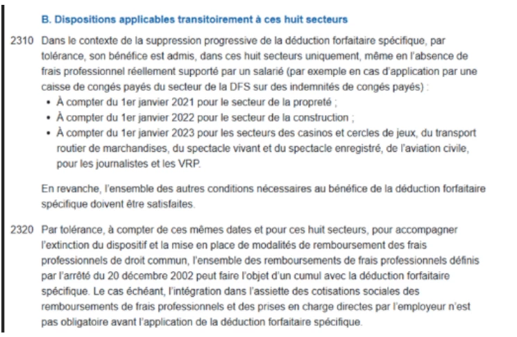 Cette tolérance vise à simplifier la transition pour les entreprises jusqu'à la disparition progressive de la DFS, en évitant une doublé pénalisation (perte d'abattement et réintégration systématique des remboursements).