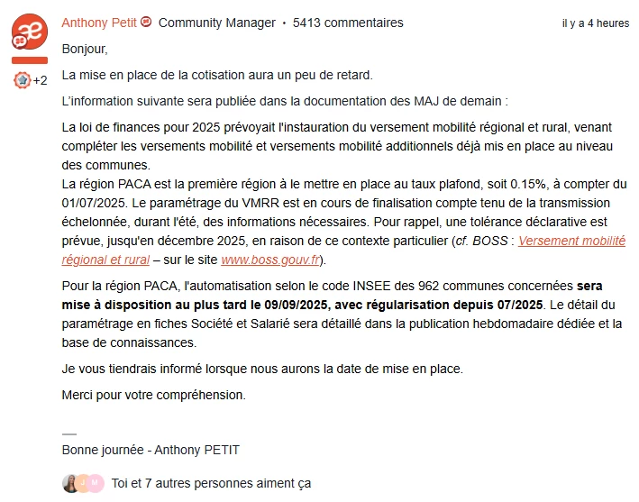 Bonjour, vous l’avez surement déjà vu passer, un nouveau versement a été mis en place : le versement mobilité régional et rural (VMRR). Avez-vous des dossiers concernés ?
