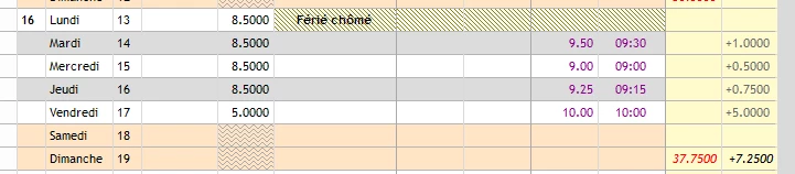 Sur une semaine avec un jour férié, le salarié a effectué des heures supplémentaires selon le détail ci dessous :