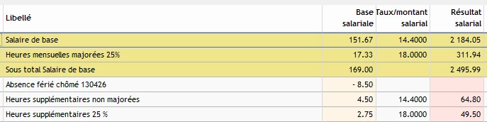 Sur le bulletin, SILAE décompte 4,5 HN + 2,75 HS25