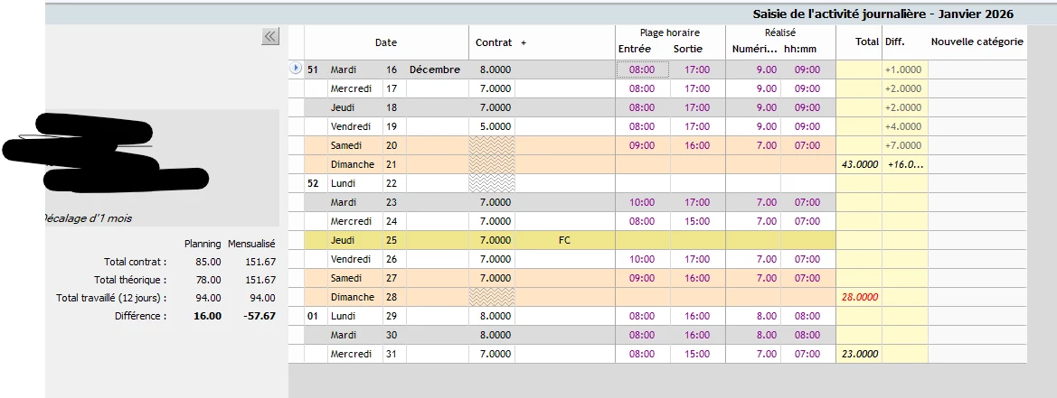 Nous reprenons un dossier avec la gestion de l’activité journalière. Les heures qui se déclenchent sur le bulletin sont non majorées, alors qu’elles devraient l’être. Etant donné que le dossier est avec activité journalière, il n’y a pas l’onglet heures pour les imputer manuellement.