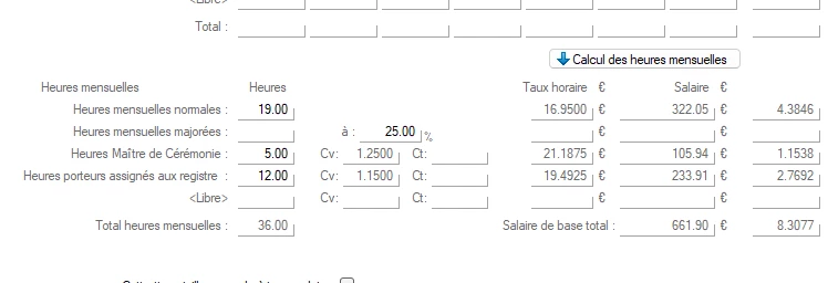 Sur une société de pompes funèbres, j’ai des porteurs occasionnels pour lesquels 3 types d’heures existent : heures “normales” / “heures registres” dont le taux horaire est majoré à 1.15 par rapport aux heures normales et des “heures cérémonie” dont le taux horaire est majoré à 1.25 par rapport aux heures normales.