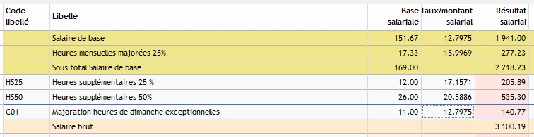 Pour moi je ferais : 2200 + 139.62 = 2339.62€ / 173.33 = 13.4981 * 1.25 = 16.8726